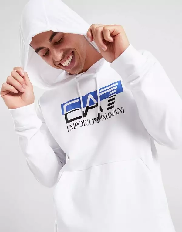 Obtén estilo y comodidad para el fin de semana con esta sudadera con capucha Visibility para hombre de Emporio Armani EA7. En una combinación de colores blanco, esta capa relajada está hecha de tela de algodón súper suave para una sensación de felpa contra la piel. Tiene una capucha ajustable con cordón, mangas largas y ribetes de canalé de punto elástico. Con un bolsillo canguro para lo esencial, esta sudadera con capucha está rematada con la marca EA7 en negrita impresa en el pecho. Lavable en la lavadora